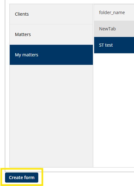 - Once you have selected the required folder, the Create form button will be enabled